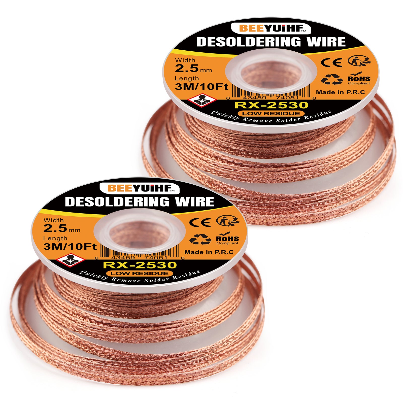 BEEYUIHF 3M/10ft 2.5mm Desoldering wick Braid, Solder wick Braid with Flux, No-clean Solder Remover wire Kit,Cable Remover Tool Solder Sucker,w 0.10'' L 9.8'