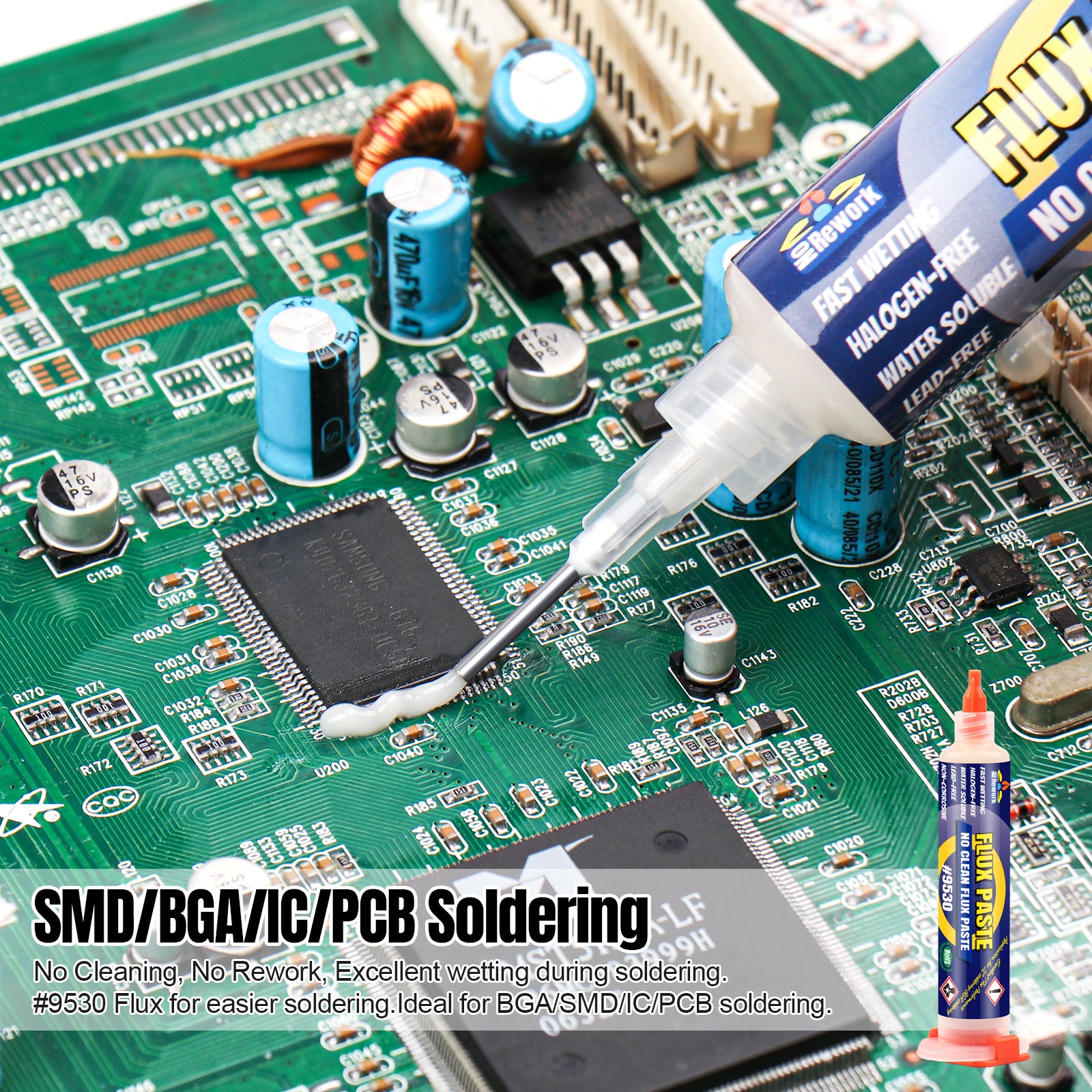 【9530-10CC High-activity flux increases the fluidity of tin】Soldering with the addition of flux can drive the fluidity of tin, making tin plating very simple and lightweight. Flux can automatically home in on electronic components to achieve precise soldering and the highest quality results.