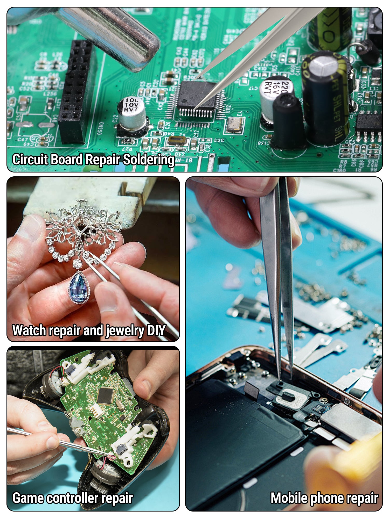 Non-Magnetic, High-Precision Tweezers boast a wide range of applications. They are primarily suited for Craft, Electronics, Soldering, Experimental Work, Jewelry-Making,3D Printed Resin Parts,Model Making, Watch Maintenance and Repair.
