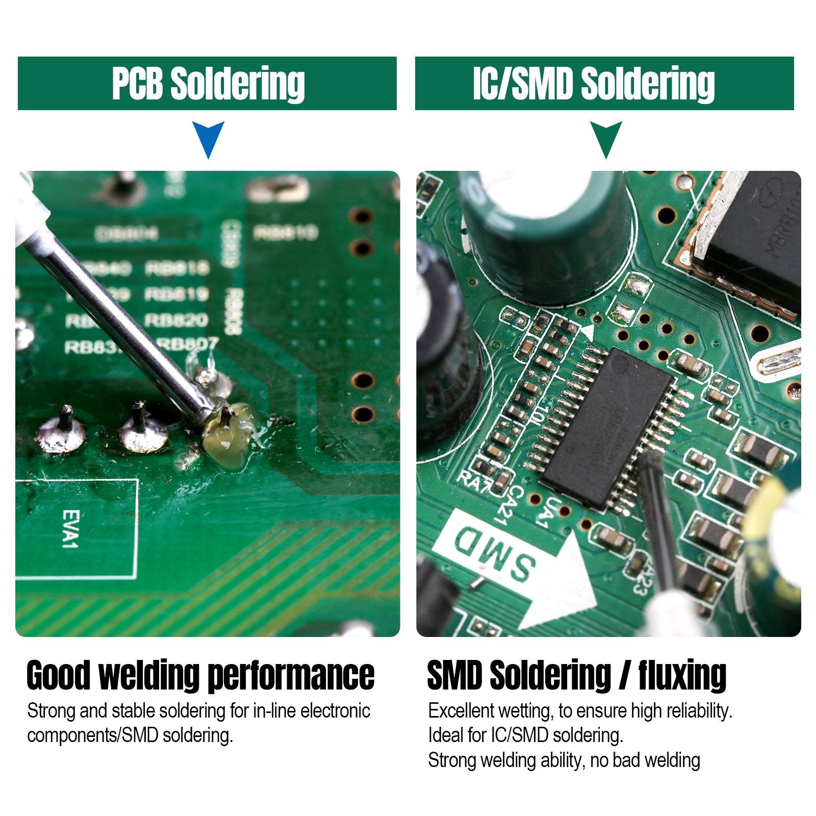 Flux for soldering application: Maintenance drag soldering, BGA planting tin, maintenance desoldering, electronic components soldering, mobile phone maintenance, mobile phone chip maintenance, LED lighting, home appliance maintenance.